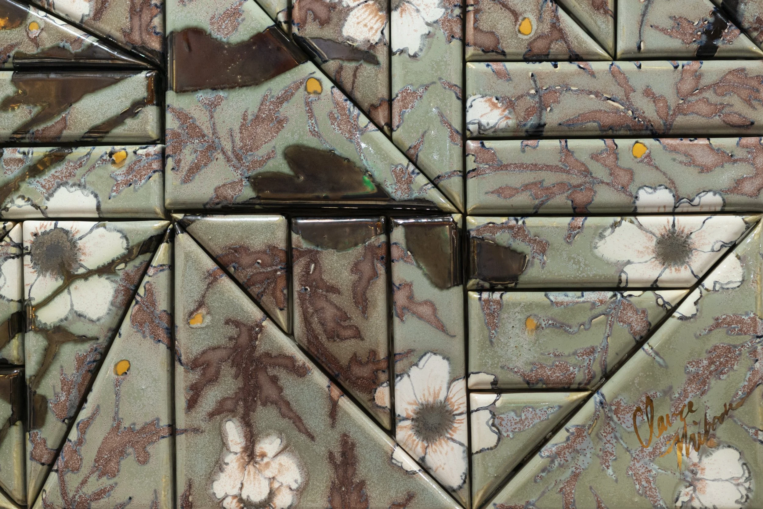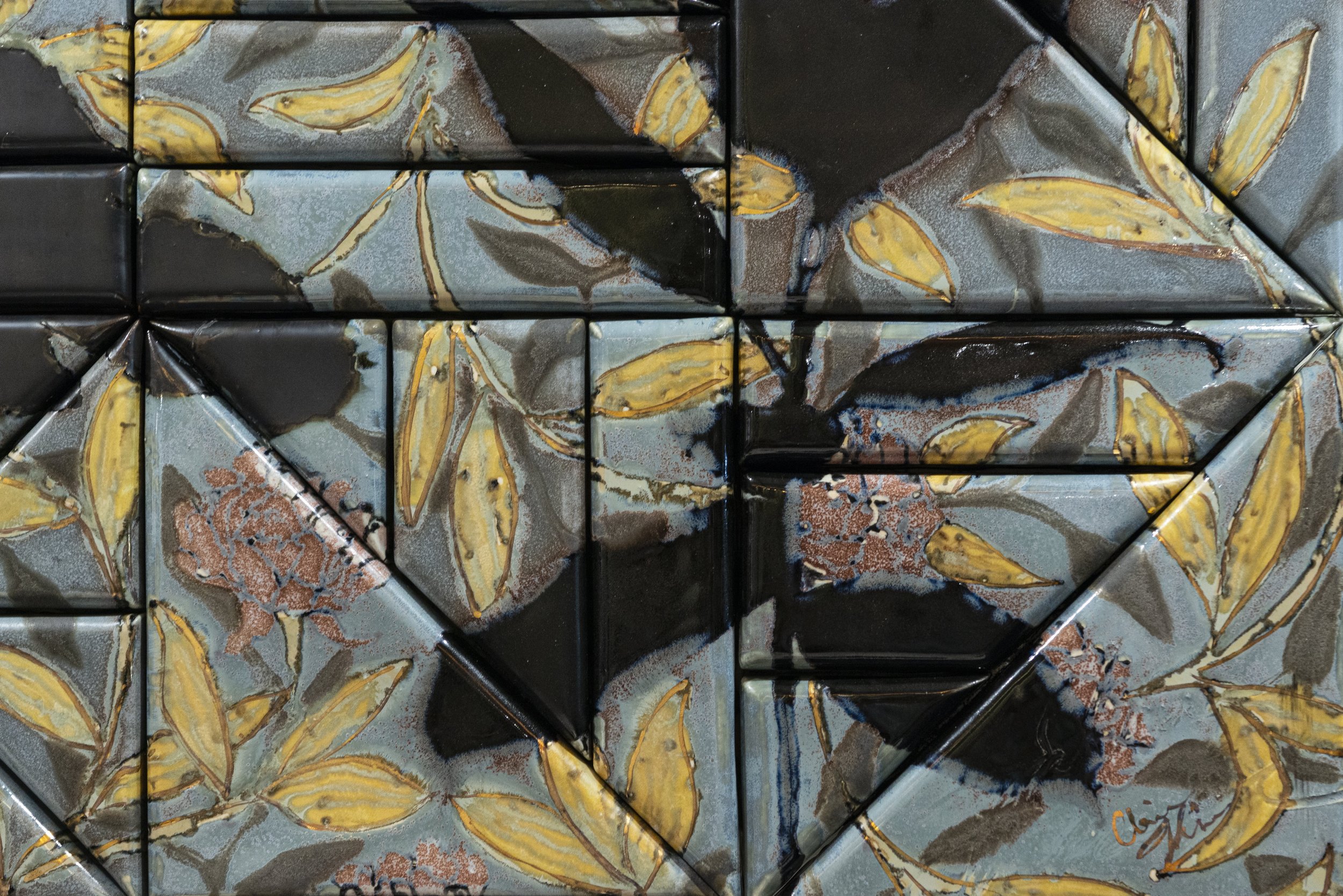 In collaboration with Design Core, Bedrock, and Eatori Market for Detroit Month of Design, Thibodeau presents a series of ceramic tapestries that harmonize with diverse environments. Drawing inspiration from Eatori's vibrant aesthetic and its community, this collection explores the intersection of domestic imagery and the enduring nature of ceramic. Each piece serves as a portal, evoking both a sense of familiarity and a spark of curiosity.